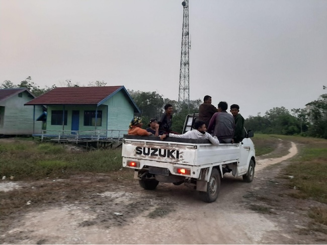 All male casual workers depart to a fire operation funded by a neighboring palm oil company/ Hanina Naura Fadhila