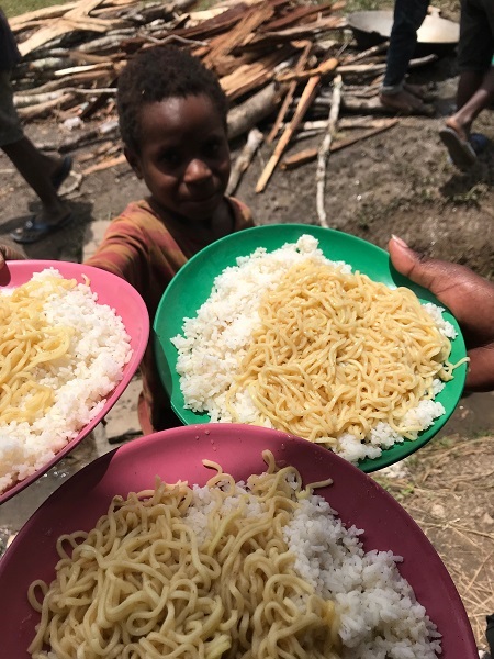 A lunch of noodle and rice contains very little nutritional value. IDPs in Wamena have only one full meal a day / Hipolitus Wangge