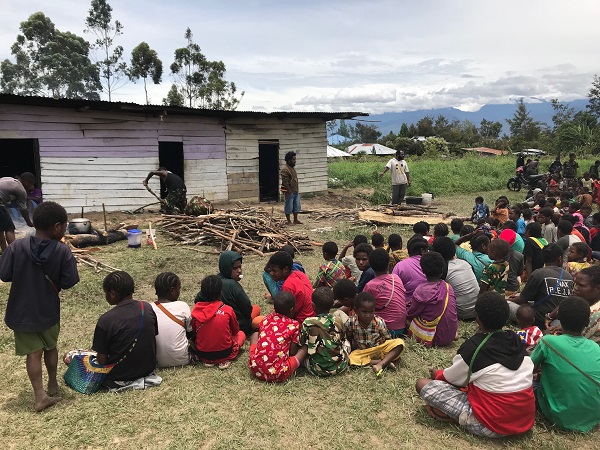 My fieldwork on local civil society organisations in Papua brought me to meet Ence Geong, a prominent activist and coordinator of local volunteers of the displaced Nduga in Wamena. Ence facilitated meeting and interviews for me with people in Weneroma, Wamena. I could see deep trauma reflected in the eyes of the Nduga IDPs, particularly the children. In one encounter, a boy talked about his future in Nduga. He was left with nothing when his house was burned down in the conflict. I wanted to take some time to talk to the children in order to understand better what they were going through, however, as a non-Papuan, communicating was not easy as some of them only speak their local language. Local Wamena residents volunteered to translate and in turn became counsellors for the children, listening and encouraging them to talk.