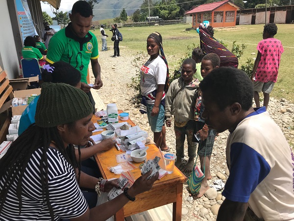 A team of medical doctors helped by local volunteers, check provide health checks for displaced Nduga in front of the emergency school in Wamena / Hipolitus Wangge